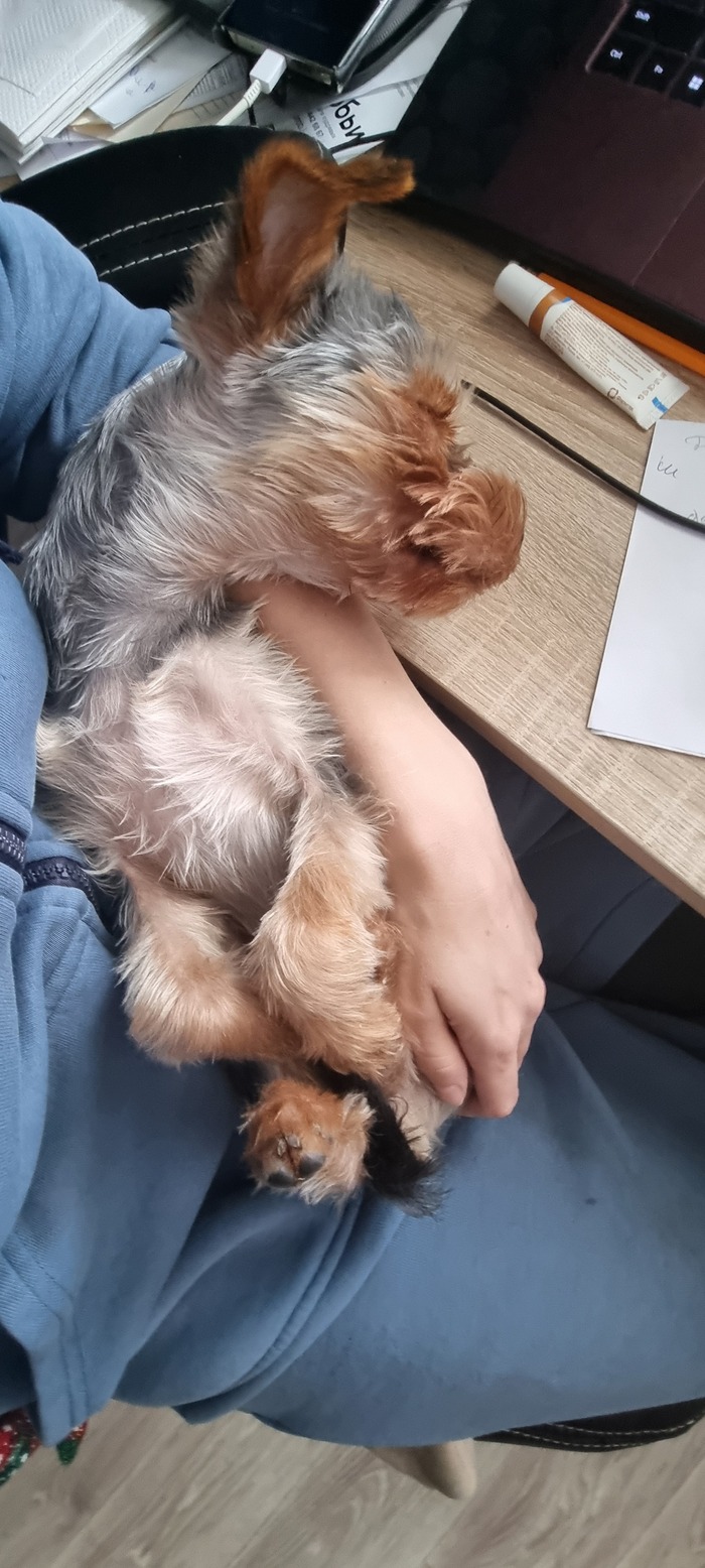 А тут у дочки друзей скоро должен был быть ДР, 5 лет, родители решили ей подарить йорка, она сильно хотела (детей 4, у каждого свои животные есть, вот и ей приспичило). Друзья попросили меня помочь в поиске на авито; несмотря на то, что для меня сильно сомнительной выглядела затея завести такому маленькому ребёнку собаку, решила помочь (ну, в конце концов, есть двое родителей, да и две старшие дочери). Нашла чудесного мальчишку, ему был почти год (искала 8 марта, а ему год исполнялся 20 марта), съездила забрала, заплатила всего 10к за него, впридачу отдали лежанку, шампуни, комбинезон и целую кучу всего. Бедный мальчик жил уже во второй семье, первые купили щенком и отдали потом, у вторых трое детей и нет времени на собаку, плюс ещё и дети то сладким накормят, то еще чем, собака болеет из-за таких инцидентов.