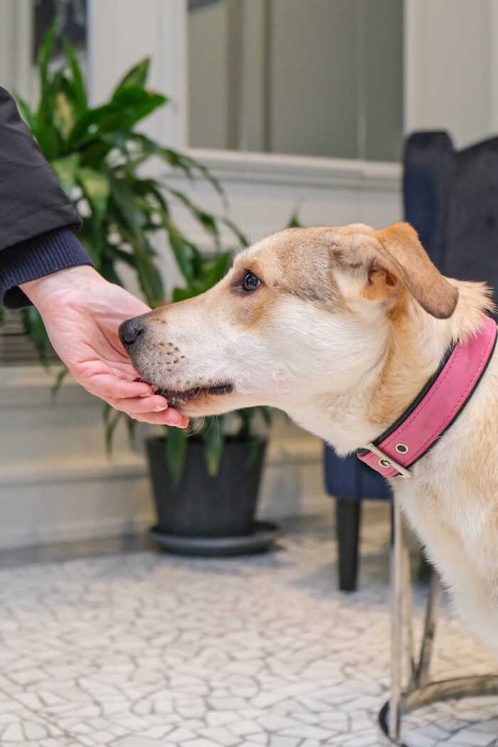 4. Дай лапу правую или левую. Он даёт ту лапу, которую попросили подать.