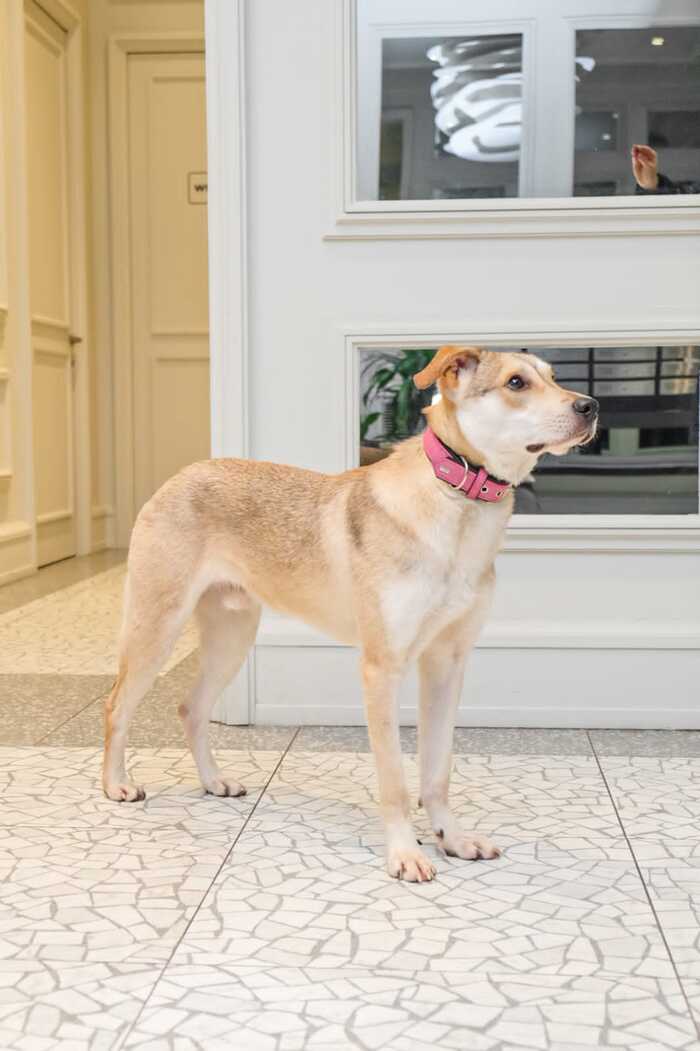 Сэм любит ВСЕХ, кошек, собак и конечно людей. Он чистоплотный и воспитанный мальчик: после прогулки в дом не идёт, пока не помоет лапы).