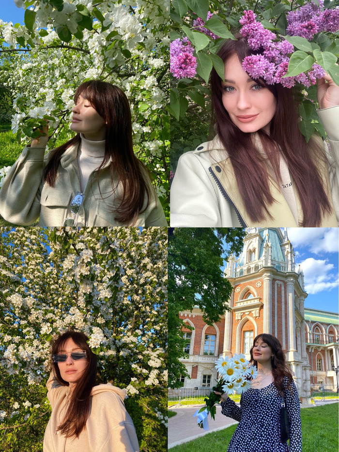 Автор и кусты цветов не разделимы. видимо скудный климат и природа подмосковья не подходят такой горячей южной барышне и она скучает...