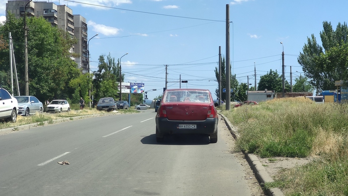 12. Типичная для Мариуполя машина. Без стекол и посеченная осколками.