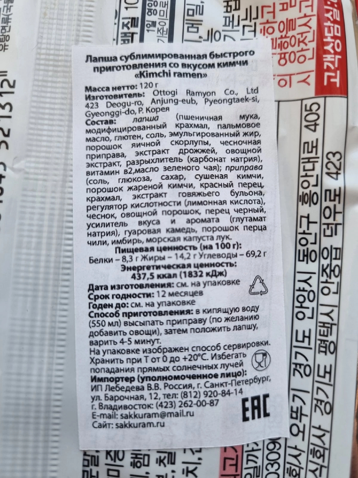 Приступаем к приготовлению. Здесь имеется некоторое разногласие, а именно на странице продавца на WB указано, что лапша настаивается 8 минут в кипятке, а на пакете, что варится 5-6 минут. В результате поиска в интернете узнал, что лапша варится 4-5 минут и вода затем сливается . На это время и будем ориентироваться. Пока варится лапша пакет с маслом кладем в теплое место (я кладу на батарею), чтобы оно нагрелось. Я решил варить лапшу 5 минут, после чего слил воду и добавил содержимое всех пакетов. Получил такую картину.