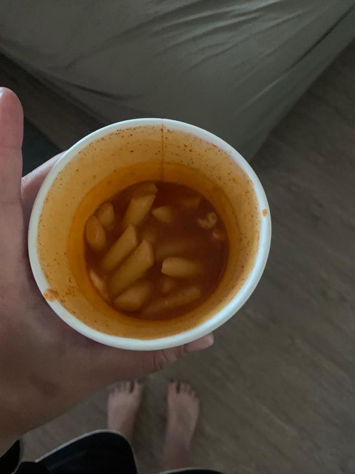 Инструкция простая: вскипятить 350 мл. воды, опустить туда лапшу, варить 2 - 3 минуты, добавить масло и специи, тщательно перемешать. Но дальше в англо- и русскоязычной инструкциях одно серьёзное различие: на русском рекомендуется воду после этого слить. Мне это показалось странным, зачем сливать воду, если в ней все специи, поэтому я действовала согласно англоязычной инструкции.