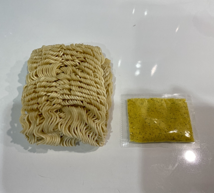 Внутри нахожу непосредственно саму лапшу и пакетик с приправами. Цвет лапши мне показался странным, какой-то он неравномерный и серый. Видимо сырьё не самого хорошего качества.