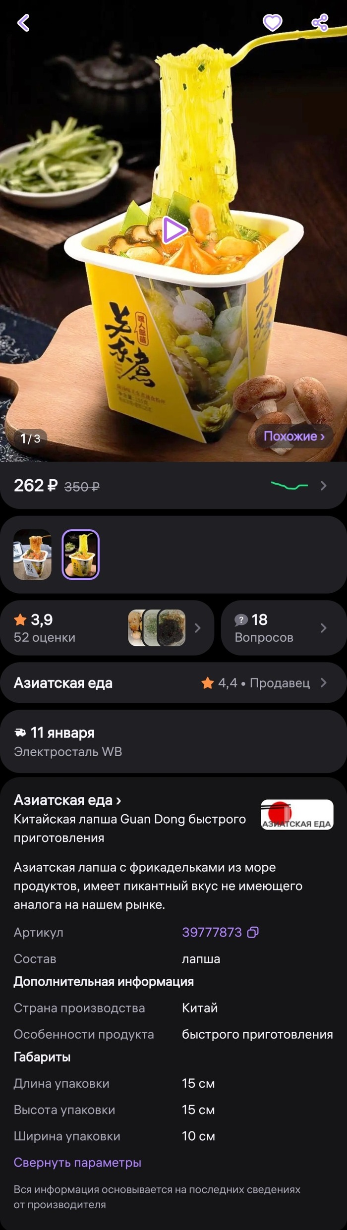 Теперь посмотрим как обстоят дела на ВБ с данным продуктом на сегодняшний день. Даже немного подешевела.