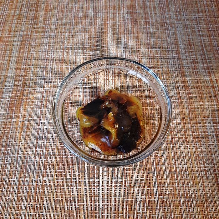 Далее пузатый пакет с соусом. Соуса много. Он тёмный, с вкраплениями жира. Очень ароматный и вкусный. Пахнет грибами. На вкус так же ощущаются грибы, пряности, соль на уровне выше среднего. В целом очень заманчиво.