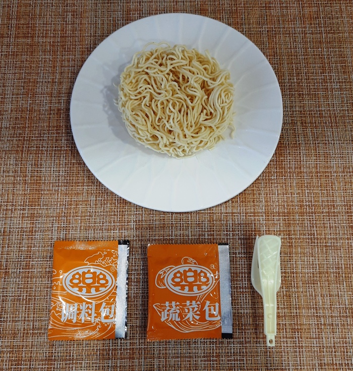 Поехали по порядку. Начинаем, как обычно, с лапши. Лапша упакована в непрозрачный вакуумный пакет и имеет массу почти 250 граммов.