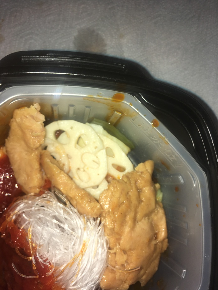 И теперь звезда любого блюда - мясо! Жутко интересно, как можно сохранить хрустящий кляр в вакуумном пакетике!Тааак, открываем и выкладываем... А чего такое мокрое? А чего такие длинные куски? Блин, как это будет в супе? Ладно, китайцы вроде не дураки, доверимся им и посмотрим, что получится.