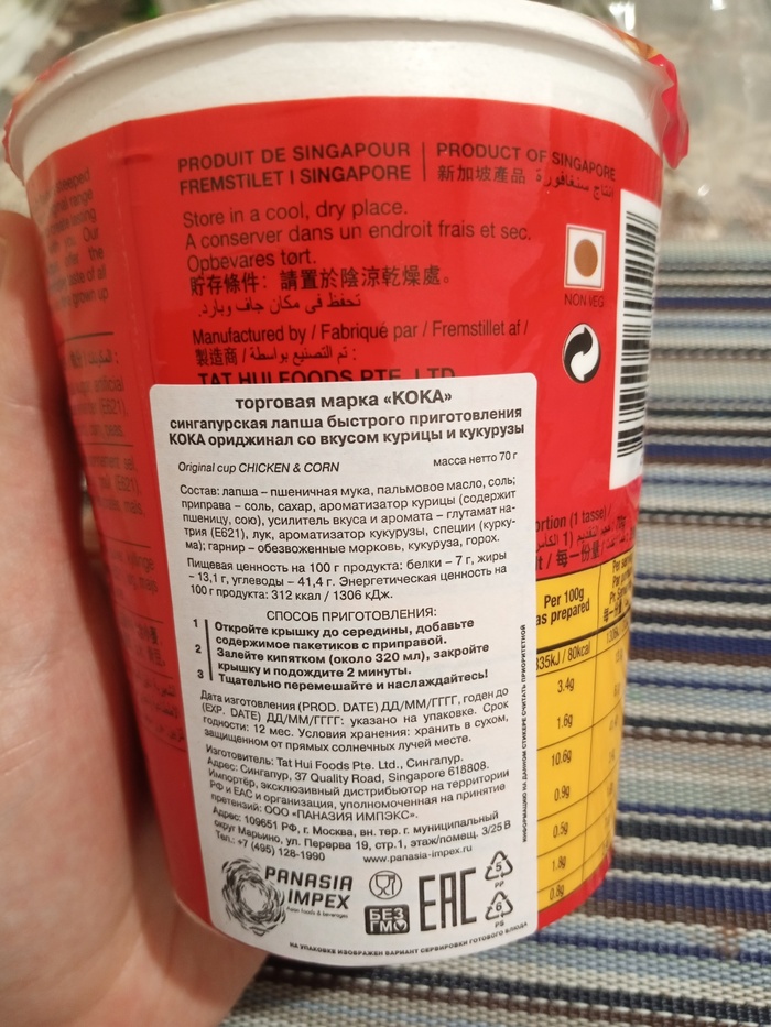 Сегодня на обзоре у нас лапша КОКА Original со вкусом курицы и кукурузы, производства аж Сингапура. Уже интригует, не так ли? Куплена она была в коршопе (г.Москва) по приятной скидке под новый год.