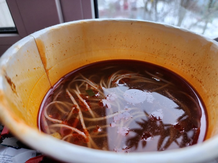 2) бульон такой нажористо-сытный, частично впитался в лапшу;
