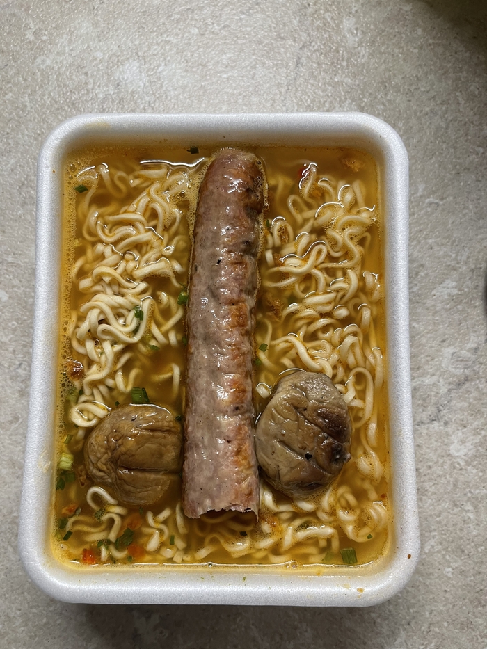 Бульон вкусный, нажористый и плотный. Не знаю есть ли тут НАСТОЯЩИЙ вкус КимЧи, так как пробовать его не довелось.
