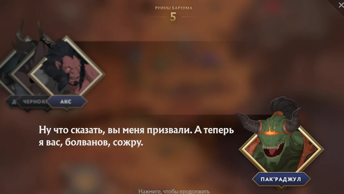 Отдельно стоит отметить Сорлу Хан — предводительницу местного племени, сменившую на этой должности Axe. Именно она руководит армией оглоди. С Сорлой Хан мы познакомились еще в Artifact, где она была одним из героев. И вот Valve, пока только в рамках ивента, ввела ее в Dota 2. Ей уделили достаточно времени в основной сюжетной линии, а заодно и выделили под нее одну из побочных линеек под названием «Теневая дипломатия». К тому же, учитывая концовку второго акта, Сорла Хан из сюжета не пропадет и станет одним из действующих лиц и финального этапа ивента. Так что самое время надевать шапочку из фольги и строить теории, когда именно Valve добавит ее в Dota 2 в качестве нового персонажа.