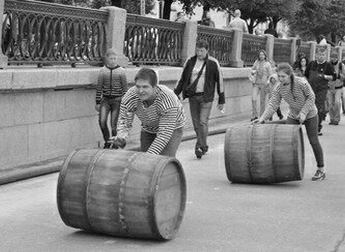 Поэтому у грузчиков существовало правило: НЕ катить бочку по наклонному трапу на человека. А вдруг сорвётся?