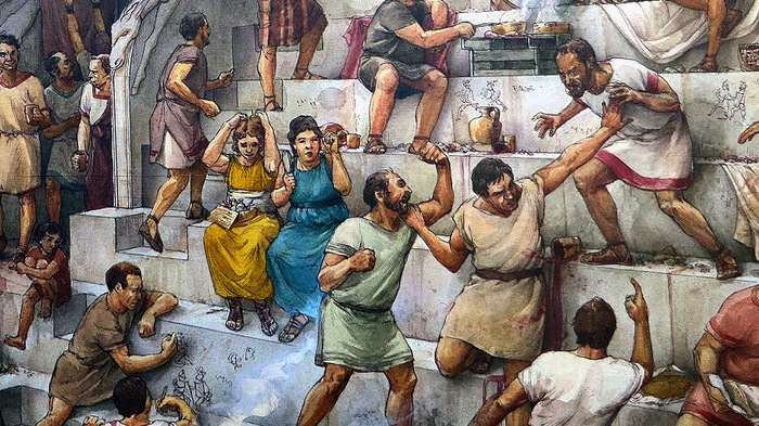 Вот тут-то и начинается та самая, веселая столичная жизнь. Удалая компания юных мастеров кисти. Щегольски одетая, при шпагах и что главное, при деньгах. Ночные рейды под винными парами. По римским закоулкам, окраинам и притонам. Выпивка, женщины с пониженной социальной ответственностью, азартные игры, драки, дуэли...