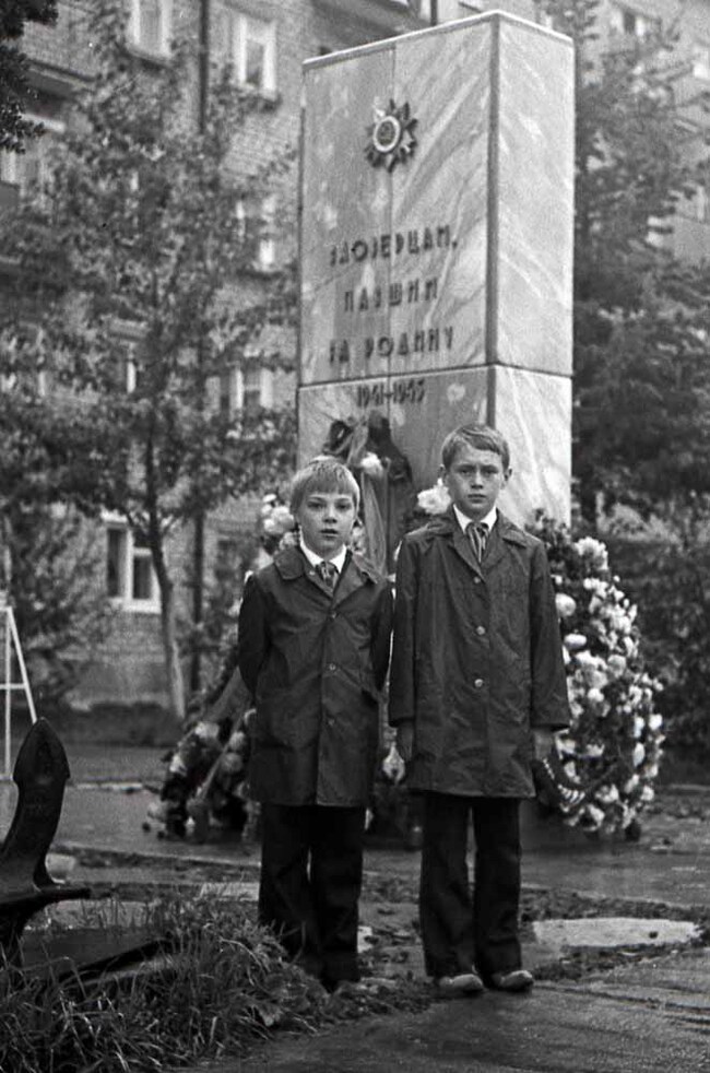 Пожалуй, это первое наше совместное фото с Агеевым. А этот памятник как закрепили за нашим классом, так до конца школы мы его чистили и прибирали.