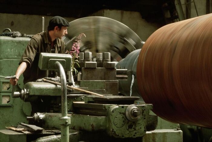 Красный фон символизирует революционный дух и борьбу за свободу и справедливость. Это цвет социализма и коммунизма, который напоминает о великих победах трудящихся и борьбе за права рабочего класса.
