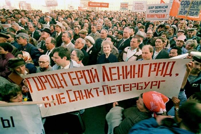 Жители Ленинграда выражают протест против переименования города в Санкт-Петербург. 11 июля 1991 года