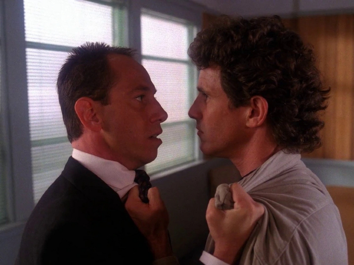 Этот кадр был на экране чрезмерное количество времени, сейчас так не снимают. Чисто твинпиксовский приём — захватывать камерой мелочи жизни.