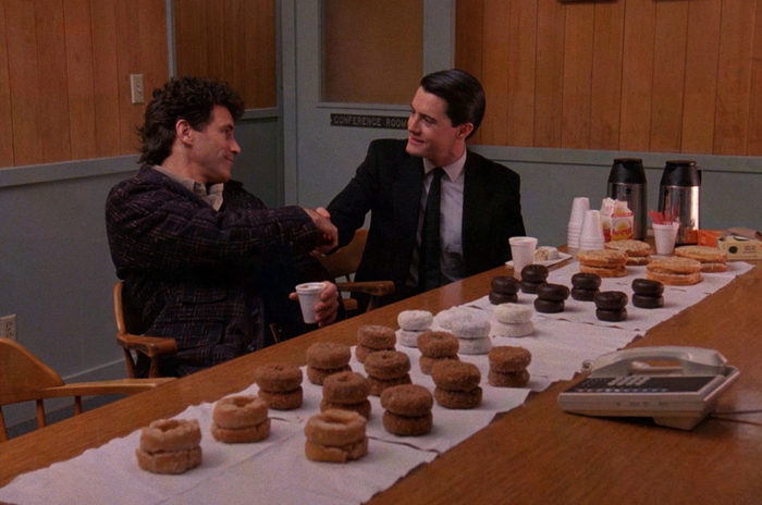 Апофеоз такого подхода можно увидеть в начале второго сезона в сцене, где раненому Дейлу Куперу приносят молоко в номер. Многие критики сходятся на том, что Линч таким образом, во-первых, приближает фильмы к театральной постановке, где всё происходит в реальном времени. А во-вторых, подобно Тарковскому, заставляет зрителя немного заскучать на подобных сценах, и даёт ему время на собственные мысли и обдумывание происходящего.