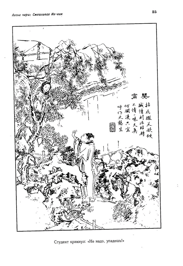 — У Ляо Чжая есть целый ряд произведений, где природа не персонифицирована, она выступает именно как природа. Это рассказы о наводнениях, землетрясениях и тому подобных безобразиях. Человек в них естественным образом оказывается абсолютно беспомощным существом. Вот тряхануло, а что он может сделать, кроме как выскочить, не помня себя, и бегать по улице в чем мать родила? Пу Сун-лин это описывает: вот, мол, какие люди забавные. Причем сам он точно так же бегал по улицам, обезумев от страха, и уже потом все это записал. Еще природа может описываться как неумолимость некоего явления — хода времени, например. Однако здесь... здесь вопрос решается по-разному.