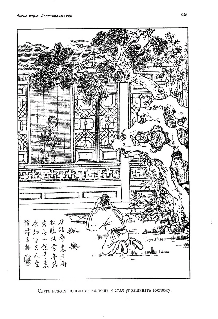 — Те, кто не умел читать, знали сюжеты «Ляо Чжая» в народном изложении. Сказители на улицах рассказывали и показывали их в лицах, ставились народные пьесы, актеры разыгрывали эти истории с песнями и плясками. Вскоре наиболее известные новеллы стали переводить на разговорный язык. Конечно, магия слова и все эти изыски терялись, оставалась только история, рассказанная по-простому, да еще и с моралью: герой плохо себя вел — его на том свете покарали, хорошо себя вел — стал чиновником. Ляо Чжай был на слуху, поэтому вполне естественно, что в конце XIX века решили взяться за его переводы. И взялись.