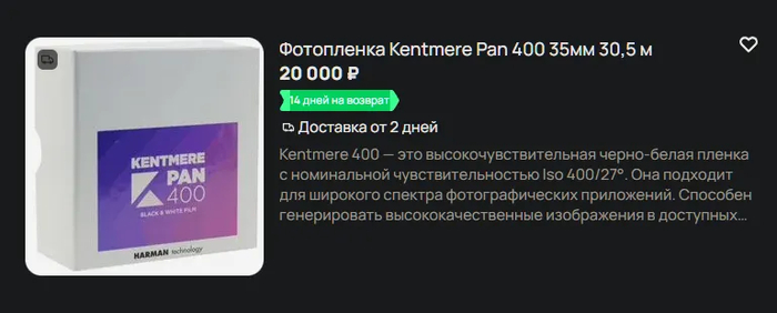 В пересчете на 36 кадров - 344 рубля. Кассета оригинальной заводской намотки стоит в районе 700 рублей.