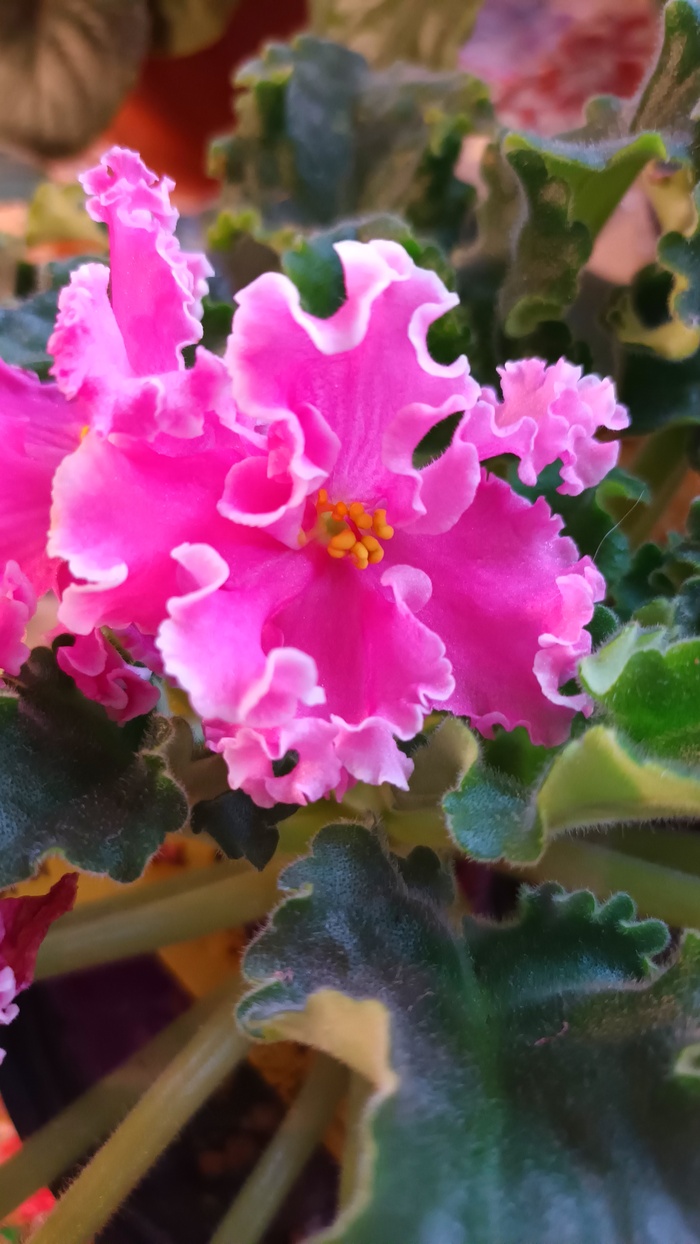 У нас фиалочка цвела по сорту только в первое цветение, в следующий раз большинство из наших экземпляров потеряли свое удивительное синее фэнтези и белый край. У этой фиалочки яркий розовый цвет будто смешался с синим фэнтези, фиалочка стала нежного сиренево-розового цвета.