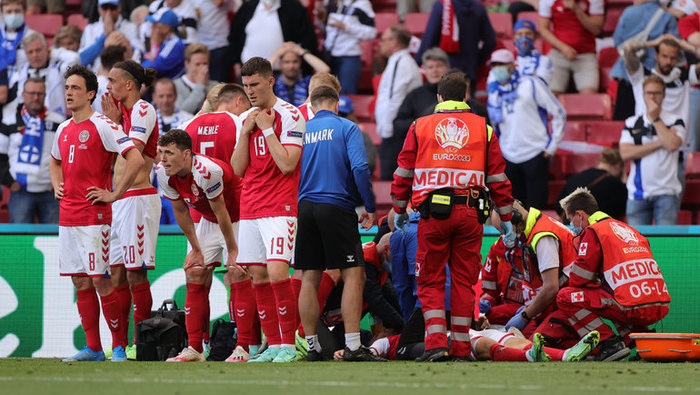 Во время матча чемпионата Европы игроку сборной Дании стало плохо