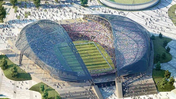 Что будет? Новый стадион в Волгограде на 45 тысяч зрителей будет построен на месте стадиона «Центральный», расположенного у подножья мемориального комплекса Мамаев Курган. В рисунке самонесущих конструкций фасада и ветрозащитных экранов интерпретированы мотивы праздничного салюта Победы. Воздушность стадиону придает особая конструкция крыши стадиона, исполненная в виде вантовых ферм, напоминающих спицы велосипедного колеса. Внутри будут рады 45 тысячам человек на каждом матче.