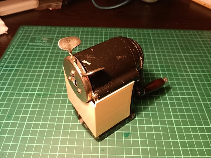 Дед доставал точилку для карандашей, крепил к столу, вставлял карандаш и я радостно крутил ручку, получая красивый острый пишущий инструмент.