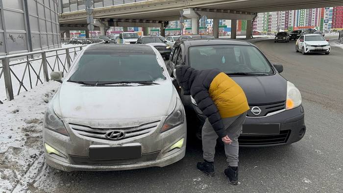 Изначальные условия: - Автомобиль Nissan ехал впереди Hyundai, по крайней правой полосе. - Автомобиль Hyundai двигался по крайней правой полосе.