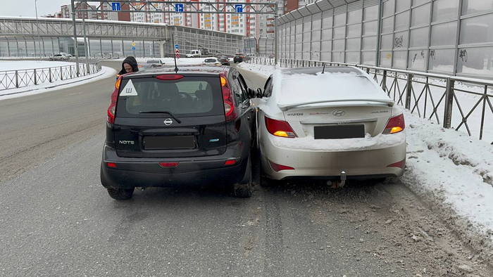 Версия водителя Nissan (№2): Водитель Nissan утверждает, что Hyundai пытался на скорости обогнать его справа и подрезал его, что стало причиной столкновения.