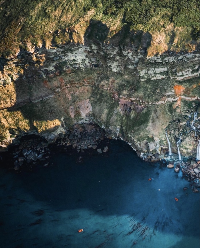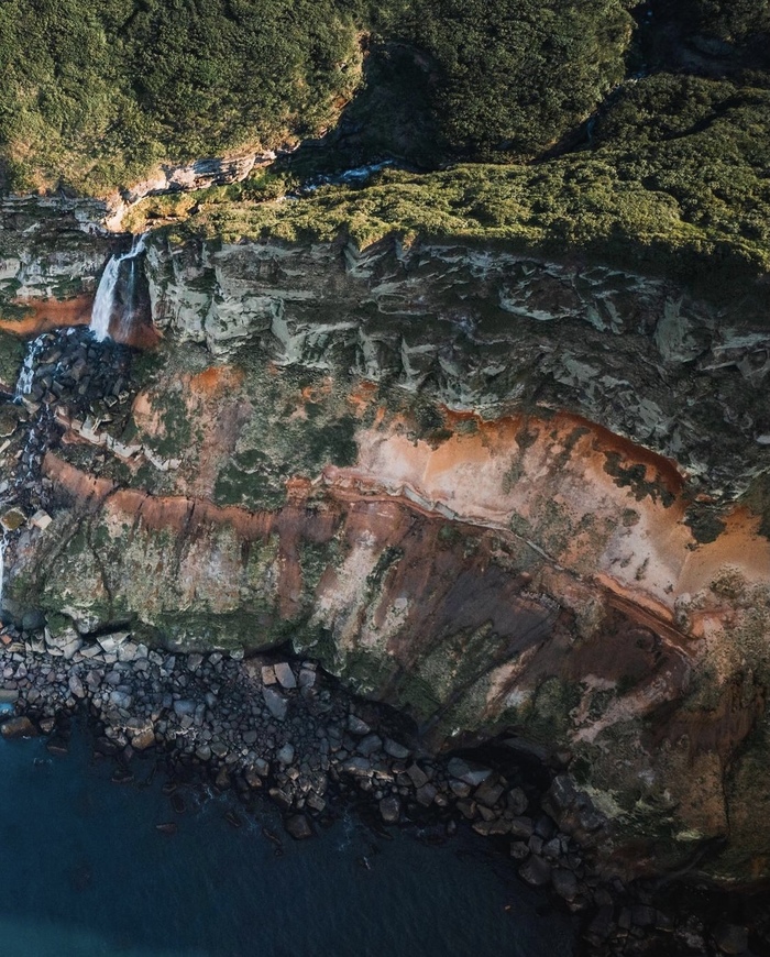 Остров Шиашкотан, Северные Курилы. Минерализованные водопады выглядят, как декорации к фантастическому фильму!