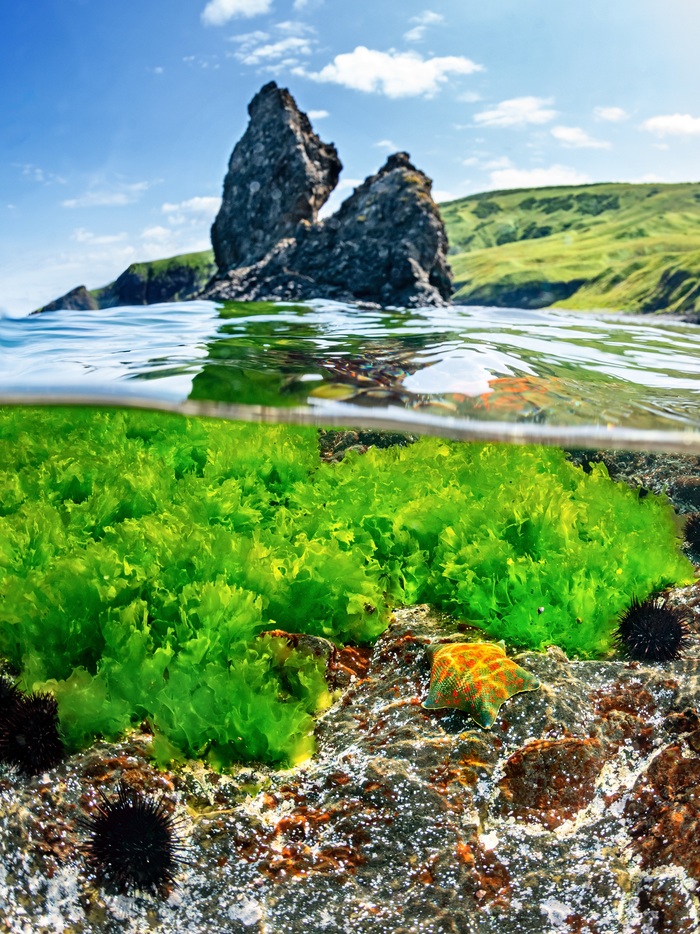 Остров Монерон - небольшой клочок суши недалеко от Сахалина, где подводное царство впечатляет своим многообразием, яркими красками и чрезвычайно прозрачной водой
