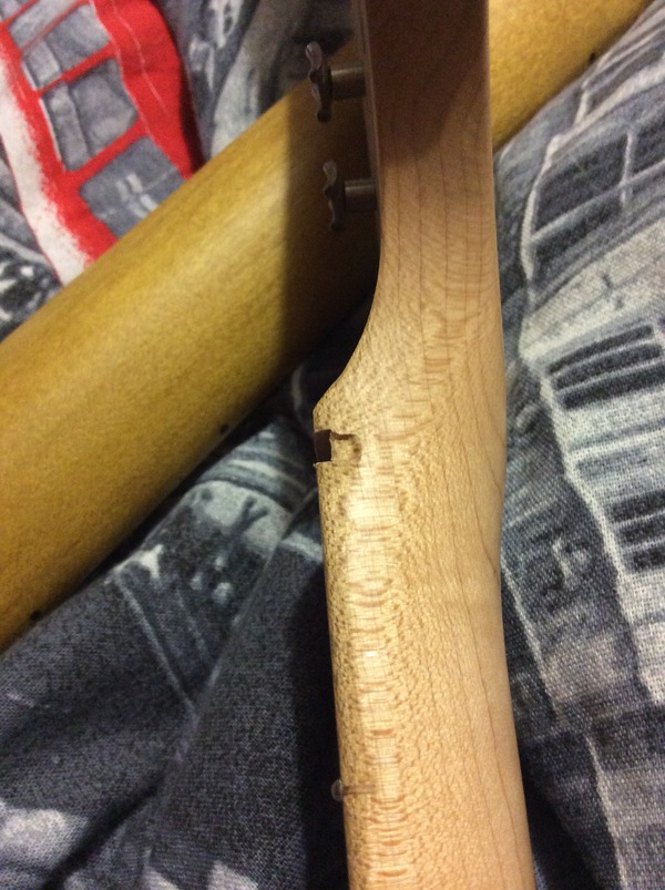 Принялся заниматься грифом. Затонировал тыльную сторону грифа и матовым лаком.