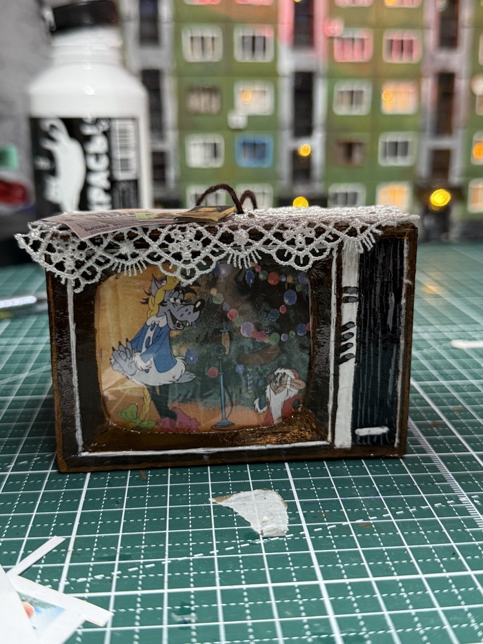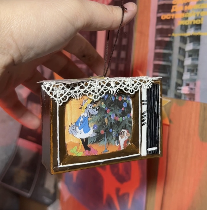 Делала из картона , предварительно создала чертеж ) Вот такая интересная идея для вашей елочки )Это пробный телевизор , косячный 😀