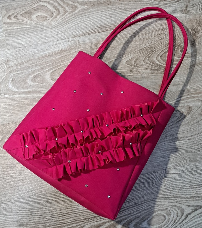 когда подбирали размеры, то решили с заказчицей, что ей не пять килограммов картошки таскать, а как леди — пару папочек А4, и выбрали небольшие размеры )