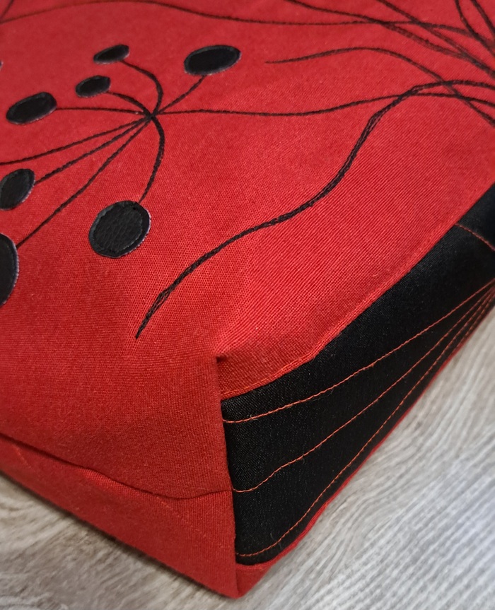 Сама сумочка сшита из ткани Грета, довольно плотный и износостойкий материал. Дно решила сделать чёрным, т.к. хотелось гармонии с вышивкой