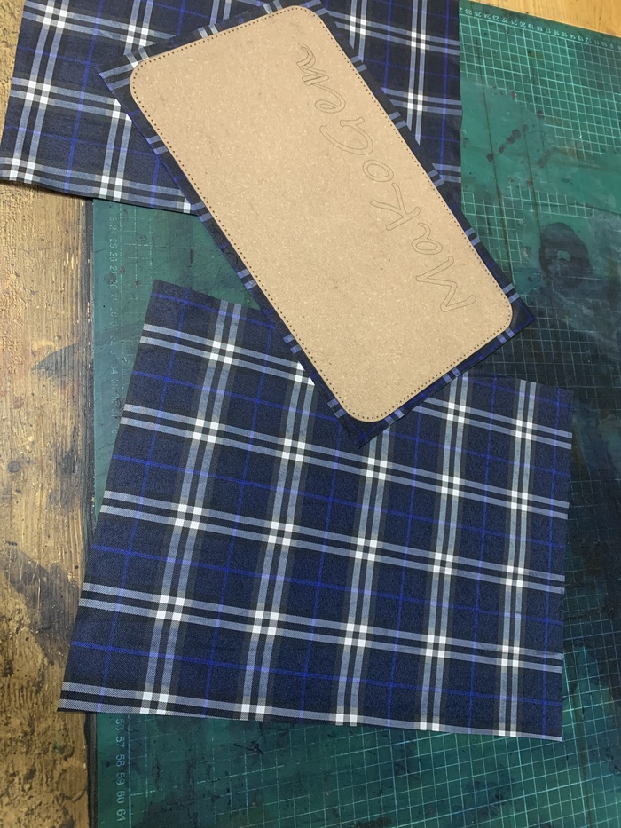 Собираю Подклад и кожкартон вместе. Ткань приклеивается и подгибается.