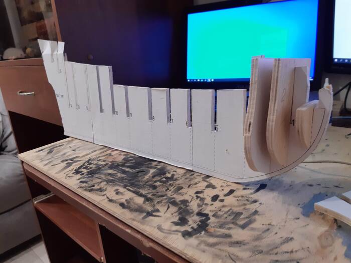 Основной скелет из обрезков фанеры. Была только толстая, поэтому каждую деталь пришлось подгонять. Напильник в помощь))