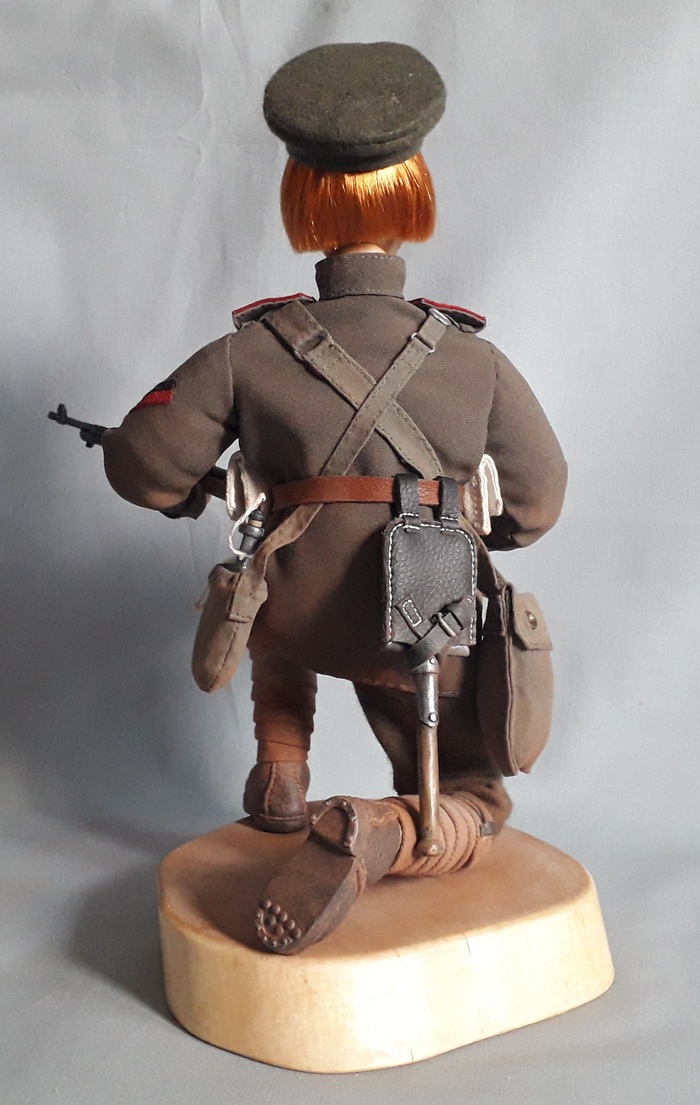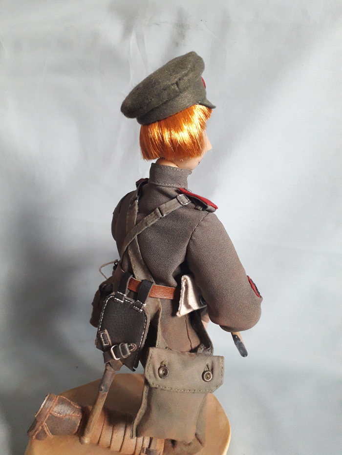 Косяки... Их много. Их очень много. Начиная от исполнения мордашки и заканчивая плохо лежащей на пуговицах краской. Отсутствие навыков съемки тоже вносит свою лепту, в жизни фройлен выглядит несколько симпатичнее, чем на фото. Не знаю, буду ли продолжать что-то подобное. Хоть и есть уже какой-то опыт с масштабным моделяжем, но все равно уверенности пока не чувствуется.