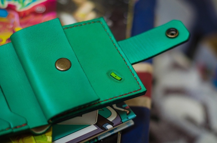 Цвет потрясающий, Итальянская кода растительного дубления, в работе очень податливая, в меру мягкая при этом отлично держит форму. Толщина комфортная, кожа 1.2 мм, на свет не просвечивается, но и не многослойный бутербродик.