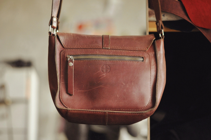 Я шила её из краста, достаточно плотного, сумка хорошо держала форму. Подкладку я использовать не стала, карманы внутри накладные кожаные.