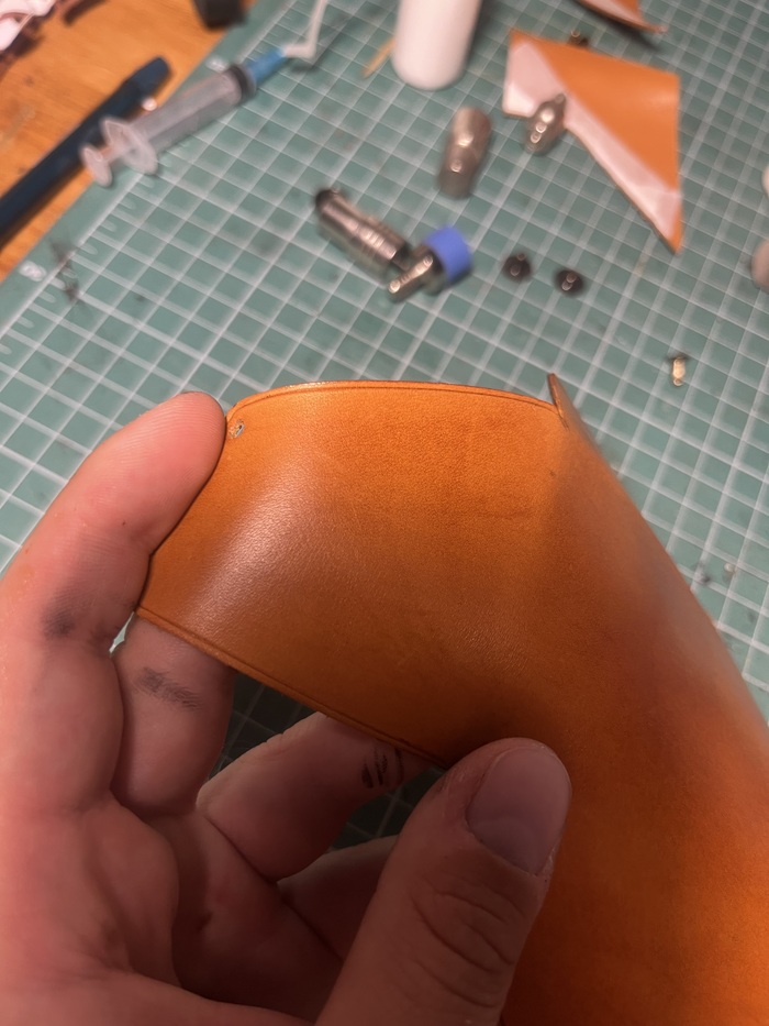 Ни единого шва. Нужно просто аккуратно вырезать, (можно любым канцелярским ножом, пробить отверстия под кнопки, все обработать и собрать это оригами, а так же иметь в наличии пресс для установки кнопок. Для декоративности я еще прошелся кризером (канавка рядом с краями) и завощил кожу пчелиным воском, но это не обязательно. Вообщем сможет каждый 😊