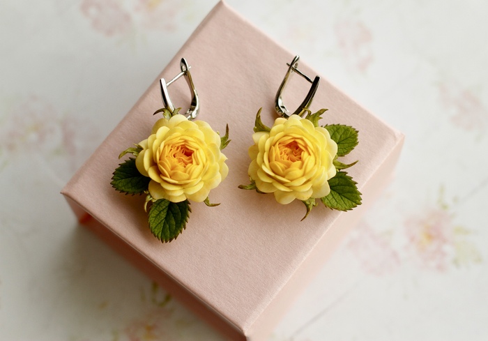 Серьги с розочками из полимерной глины