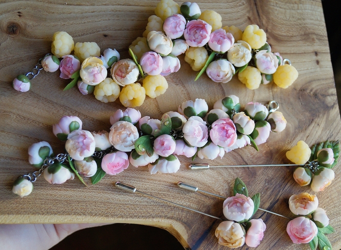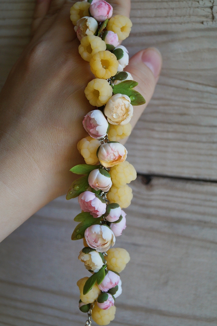 Солнечные пионы с жёлтой малиной, полностью ручной работы