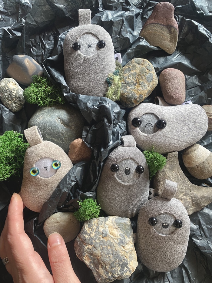 И вот они. Кто-то мшистый, кто-то со своим особенным тактильным рисунком, как камушки, которые мне так нравятся, что я забираю их домой (да, это они на фоне:), а кто-то даже успевает вырастить новую жизнь на себе (позже покажу, он уехал в новый дом)🗿💗