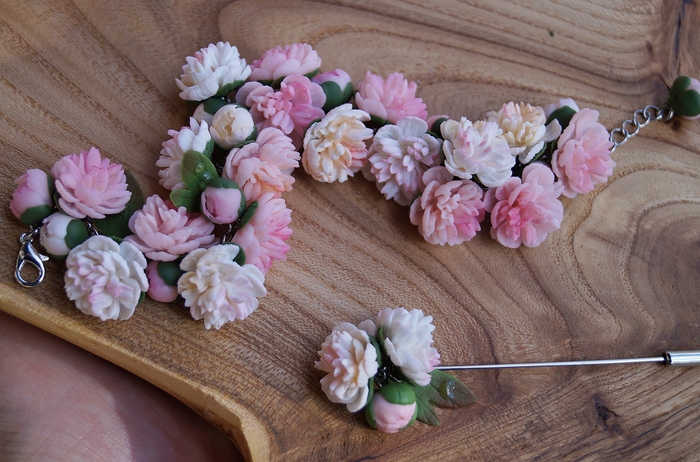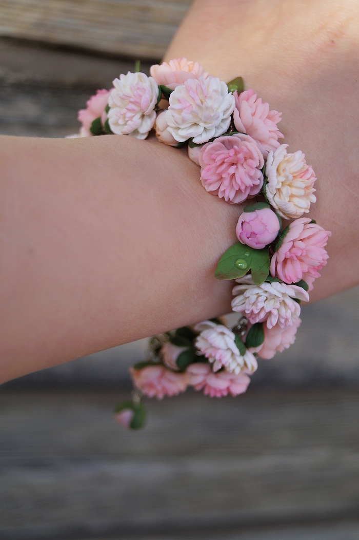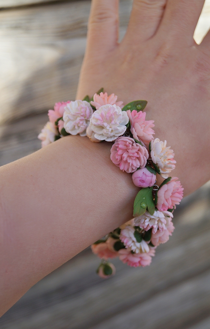 Браслет с цветами, ручной работы