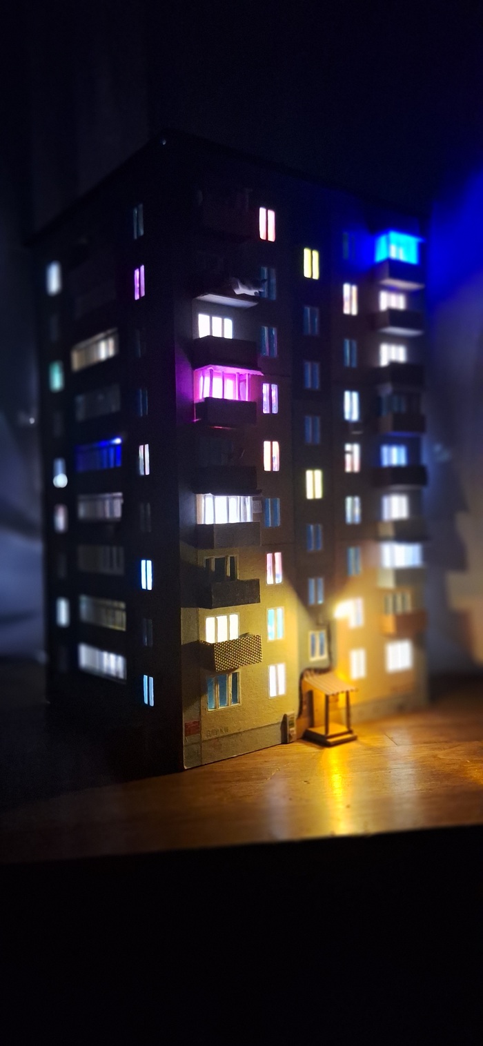 Каждое окошко — это маленькая жизнь: кто-то готовит ужин, кто-то смеётся с семьёй, кто-то просто отдыхает после долгого дня. И вот уже серые стены превращаются в мозаику тепла и уюта.