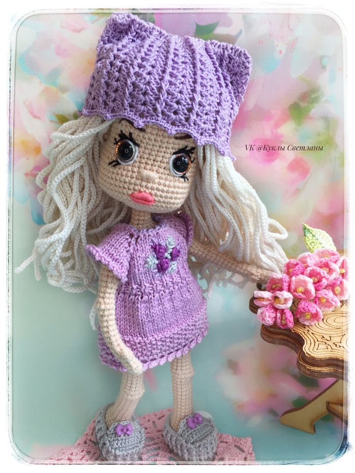 Кукла связана в технике амигуруми. Внутри проволочный каркас. Голова поворотная. Одежда съёмная. Ростом около 20 см. Стоит самостоятельно. Подробнее в моей группе в VK. Ссылка в шапке профиля.